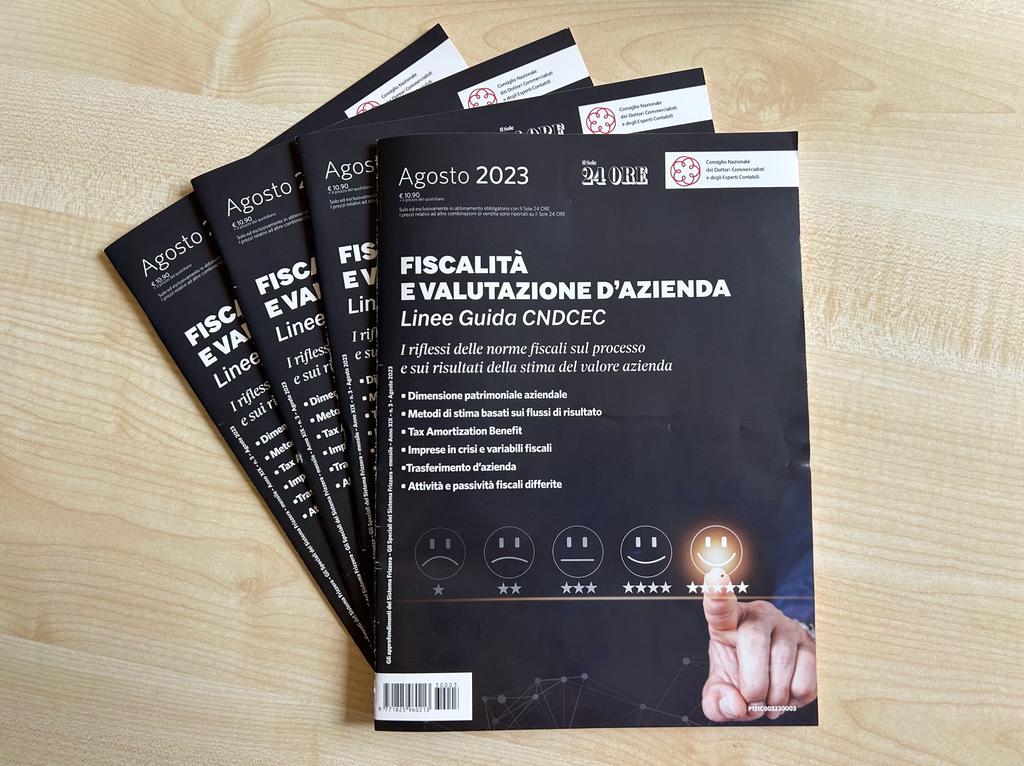 Saranno in edicola da martedì 8 agosto, in abbinamento con Il Sole 24 Ore per un mese, le linee guida a cura del Consiglio nazionale dei commercialisti “Fiscalità e valutazione d’azienda. I riflessi delle norme fiscali sul processo e sui risultati della stima del valore azienda“. Le valutazioni aziendali, infatti, rappresentano da sempre un tema complesso e particolarmente qualificante della professione del commercialista e, in generale, per i cultori e gli studiosi delle materie economico-aziendali.